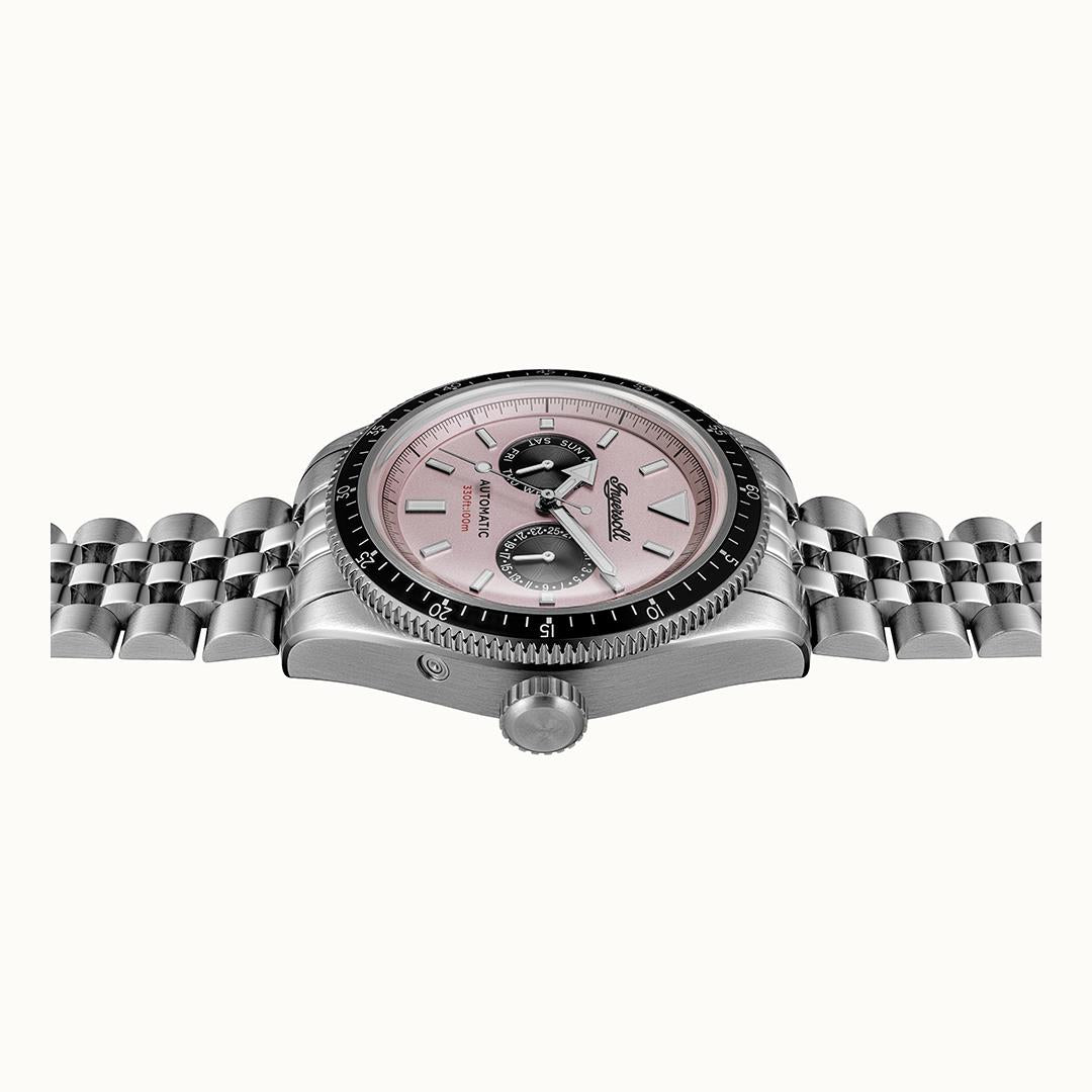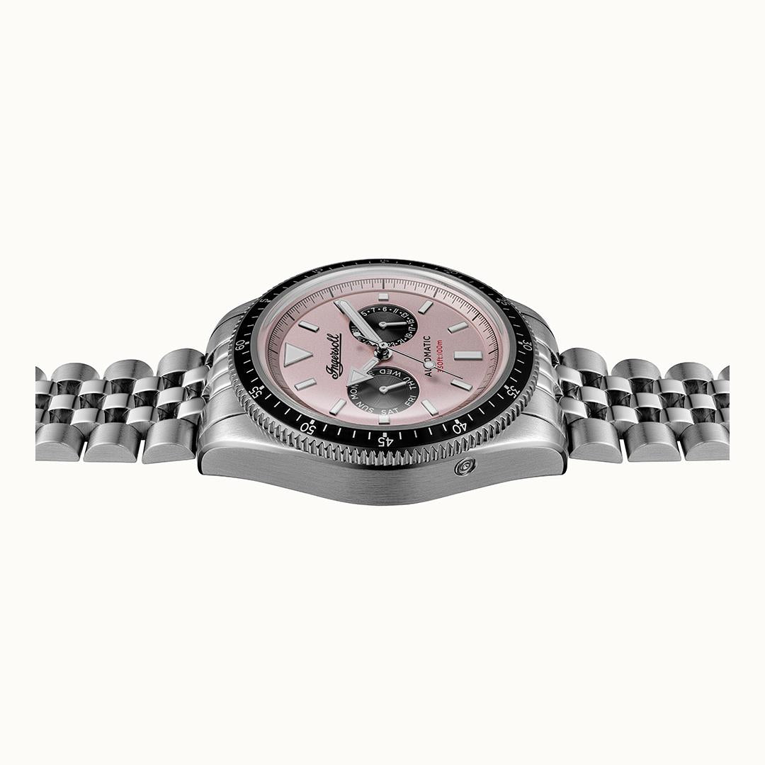 Ingersoll 1892 The Outlaw Automatic Mens Watch with Pink Dial and Silver Stainless Steel Bracelet - I17201