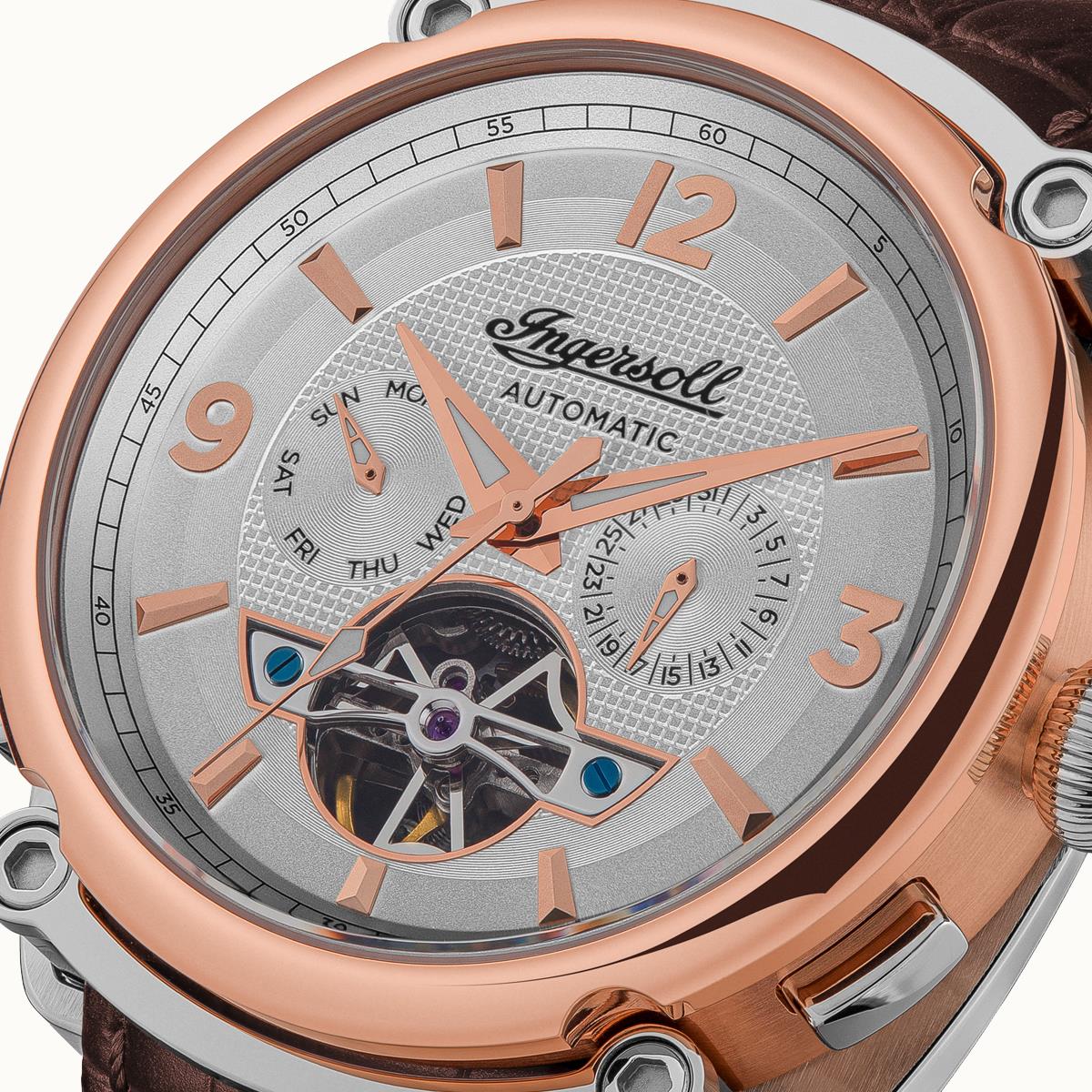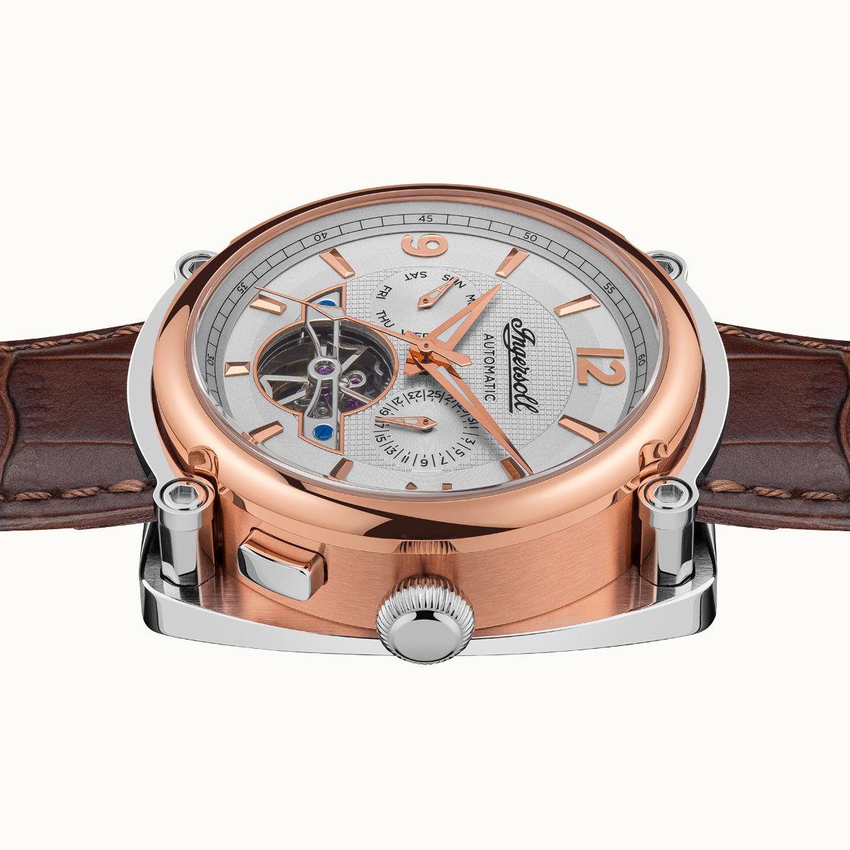 Crafted in the spirit of the Ingersoll brand, the two tone rose gold/ silver Michigan I01103B houses a automatic powered movement and features a design that represents Ingersoll’s legacy for precision timepieces.