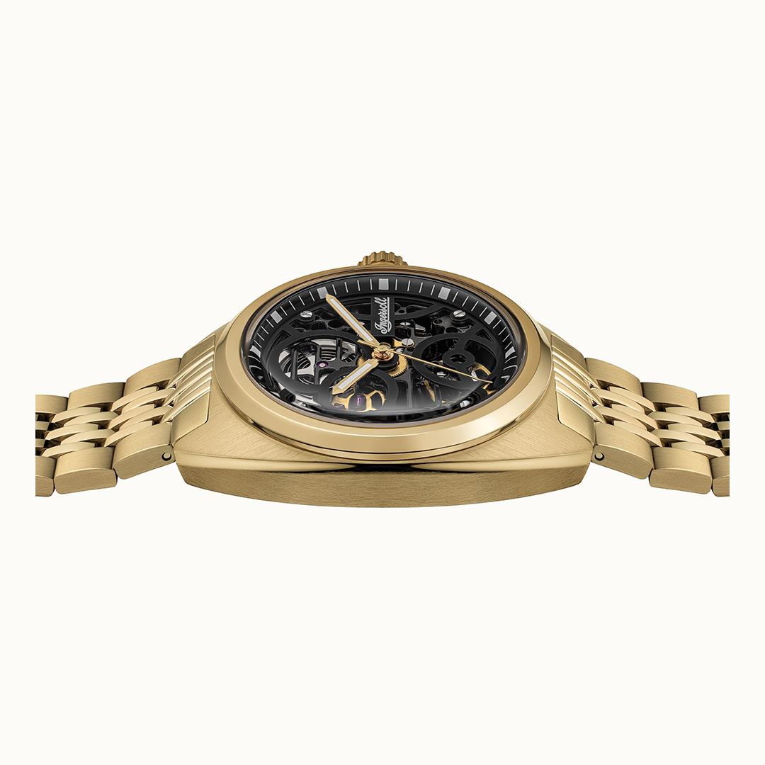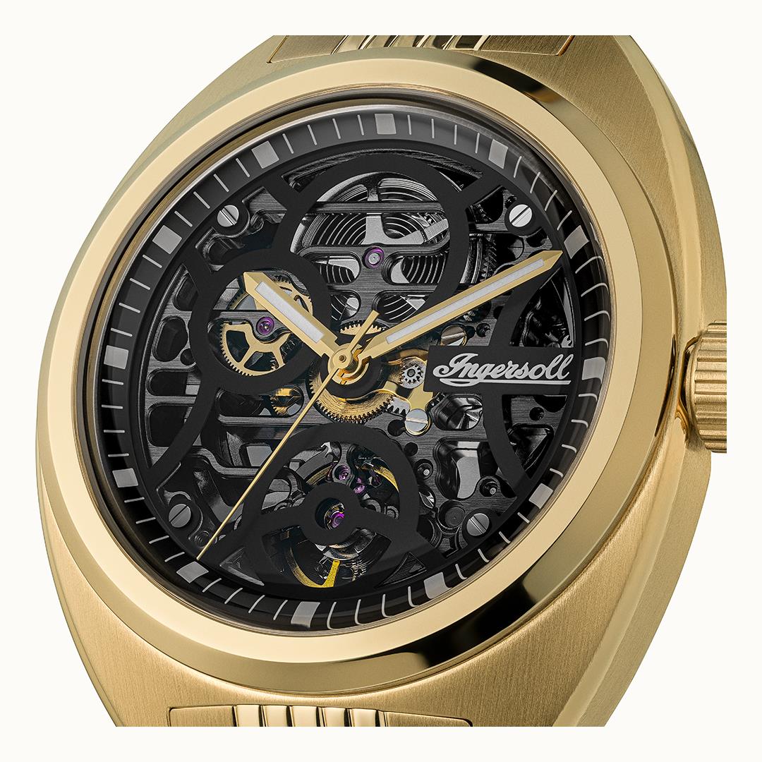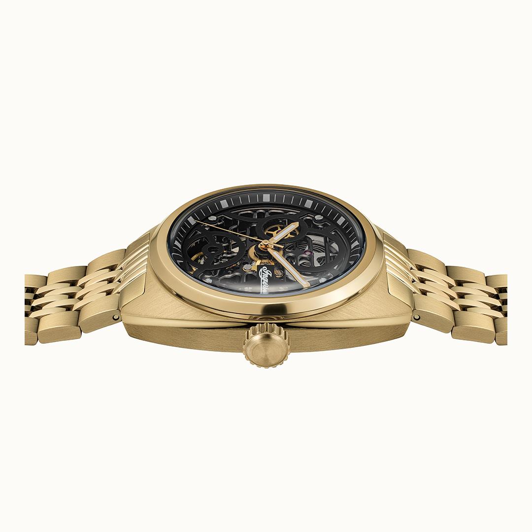 Ingersoll 1892 The Wrangler Automatic Mens Watch with Black Skeleton Dial and Gold Stainless Steel Bracelet - I16902